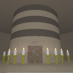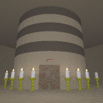 2階、3階、4階に降りてみて、 よ〜く見てみましょう。 なにか違うところに気が付きましたか? 「そう、ロウソクが一本消えています。」 それぞれの階でクリックするとOKです。 最上階に戻りましょう。 |