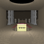 ピラミッドの下層部にきました。 天井には降りてきた穴、床には装置があります。 もう下に降りる石がないので最下層だと知ります。 装置を調べてみると動きそうもありません。 奥に何か見えるので前に移動をしていきましょう |