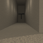 暗い通路の奥にうっすらレバーが見えますが、 近づいてもレバーはありません。 (ブラウン管ではうっすらと見える程度の設定で 作ったのですが、完成してから液晶の画面で プレイしてみると、レバーがはっきり見えたので ショックでした) |