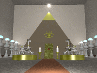 秘宝が中にあるだろうと思われる金のシールドが あります。 そこをあけると台座があります。 これは・・・・? |
