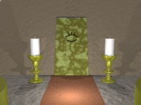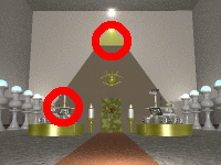 石の玉を触ると金の玉になります。 両方の玉を金の玉にしてからロウソクを調べて 下さい。 一本ずつ火が消えその度にエジプトとマヤの 秘宝の名前を聞いてきます。 |