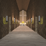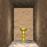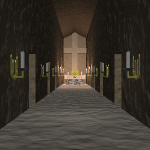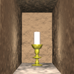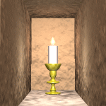 移動をクリックすると祭壇の下に矢印が表示されます。 4回クリックして後に戻ります。 左右に奥まった通路があります。 入ってみると突き当たりになっています。 おきまりの壁崩しです。 壁を崩すと中に燭台を見つけます。 燭台は8カ所あります。 奥にいくにつれて壁にぶつかる回数が増えます。 根性で開けていきましょう。 |