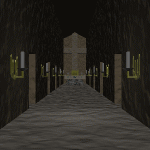 聖堂から出てみるとさらに下に行く穴が開きました。 さあ!探索はいよいよ終盤です。 (十字のスイッチを押したあと部屋から出るのに 移動移動で後に下がって出るのもいいけど面倒なので 丸いスイッチを押すと一気に部屋から出ることが 出来ます。こういうときに便利です。) |